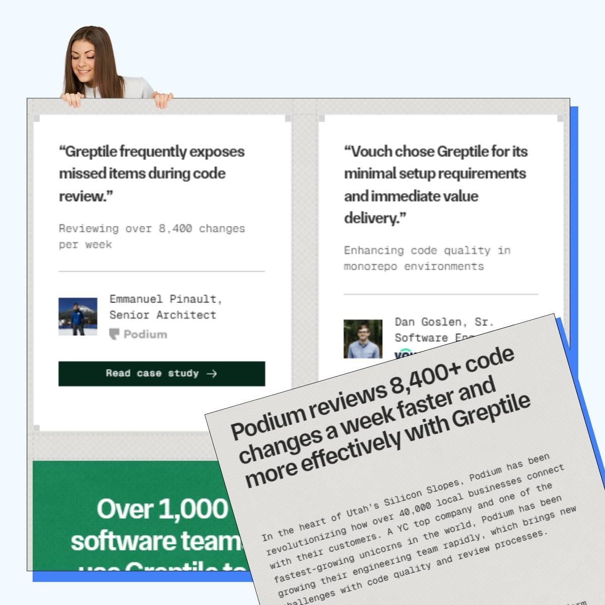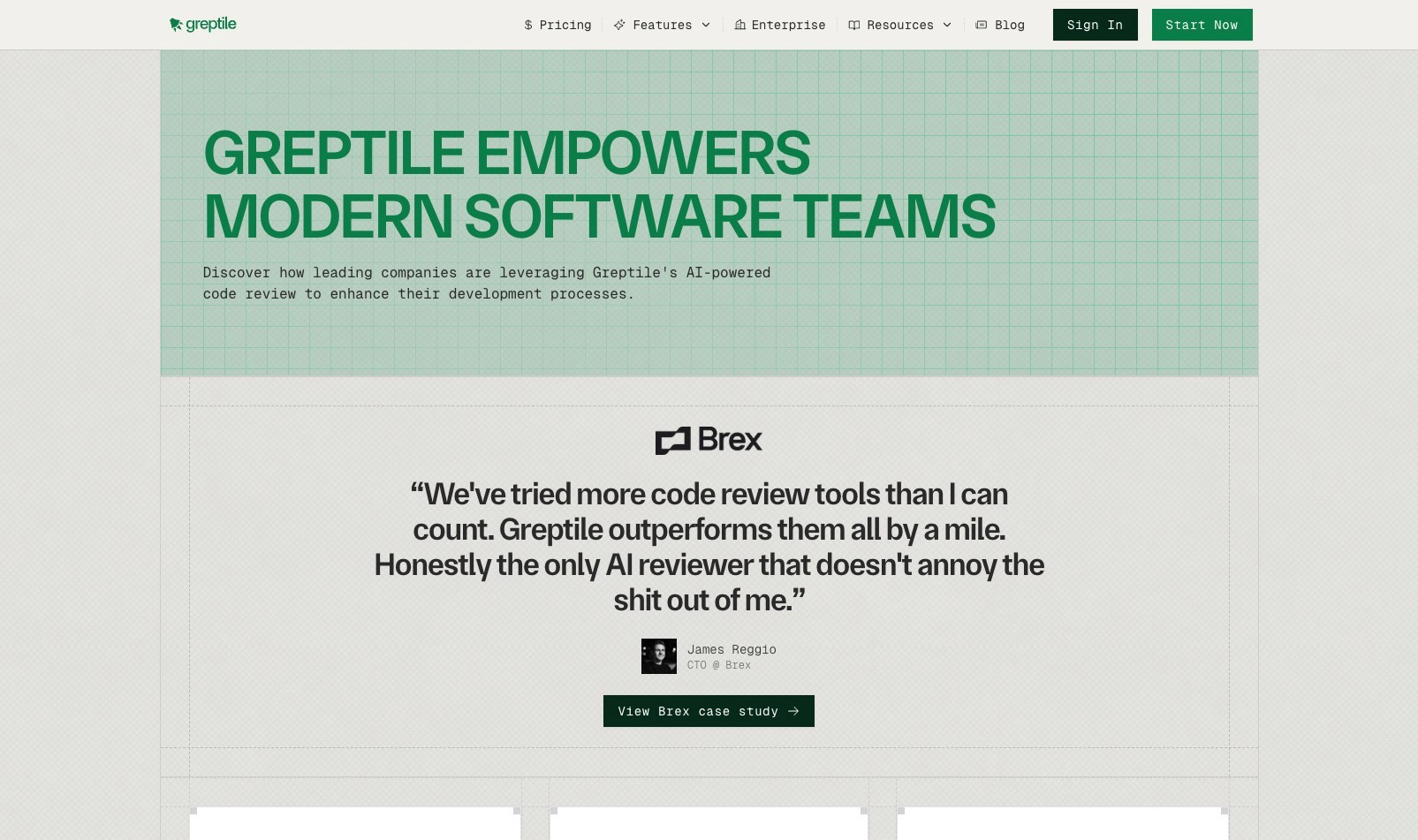 Greptile’s customer evidence page shows how to let customers do the selling. Instead of generic quotes, they use super-specific testimonials that spell out an exact use case or benefit. And if a buyer wants more detail, or to see exactly how, they can click through to the full case study. Nothing fancy here. Just well-executed social proof.