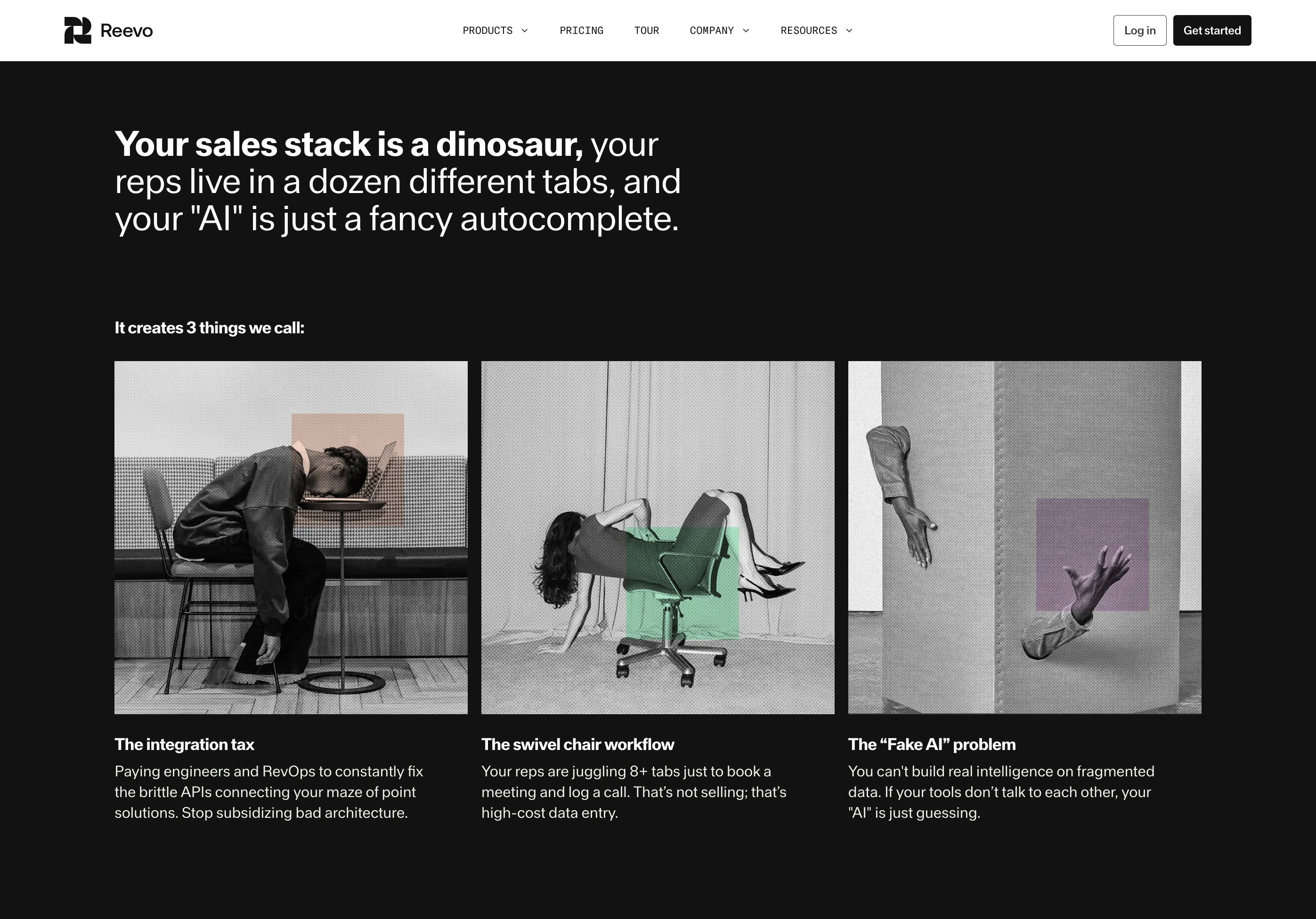 Reevo’s problem section does something more companies should copy: They creatively name the buyer's pain. Instead of generic customer issues, Revo makes them memorable: