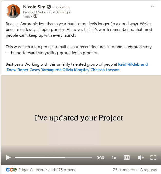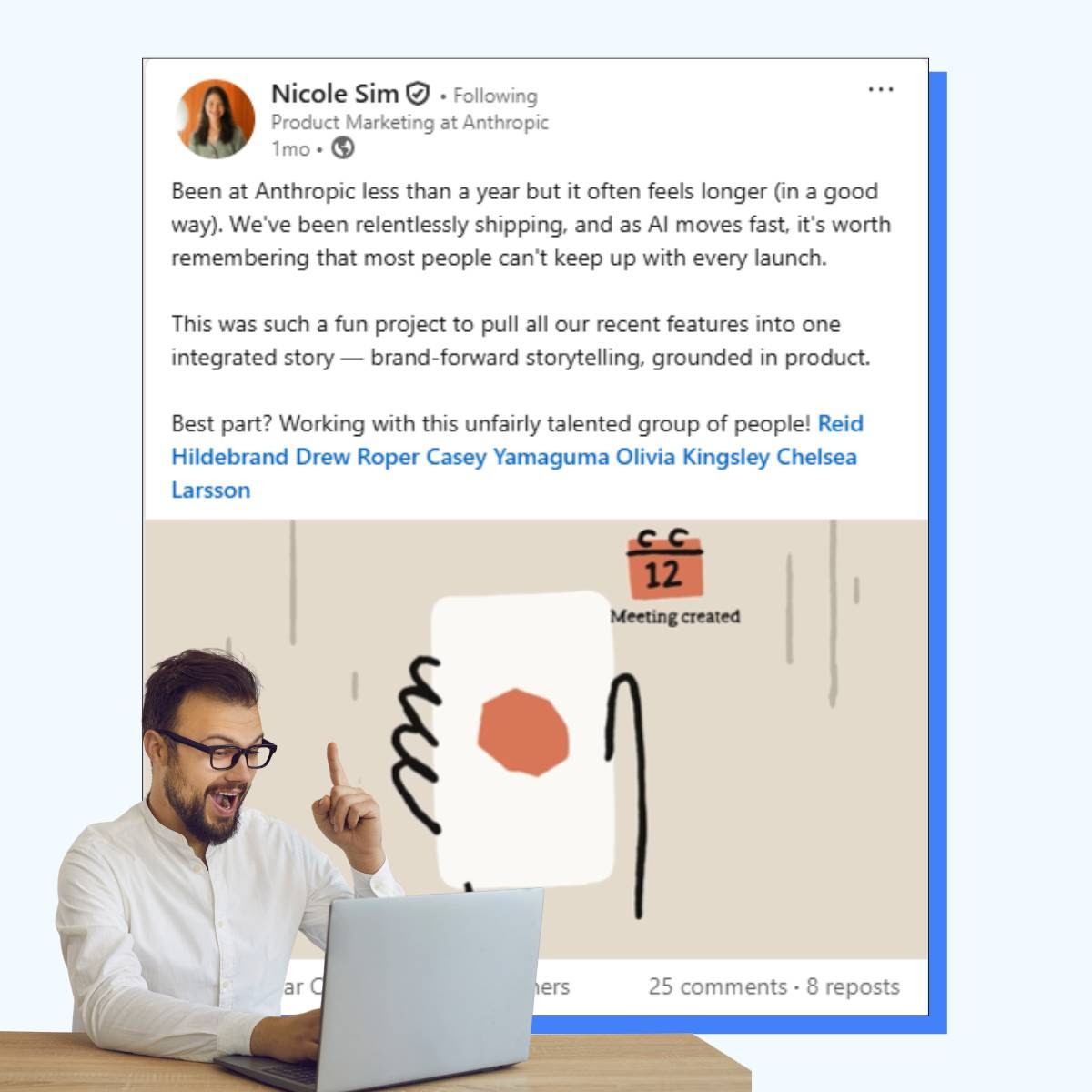Anthropic knows most people can’t keep up with how fast they ship new features. So instead of another feature launch, they stitched recent updates into a single day-in-the-life story. You follow an idea from spark → draft → action. You get introduced to a string of new capabilities (ones you probably missed) that show up when they’re needed. When you’re shipping fast, don’t make buyers connect the dots. Do it for them with one clear narrative.