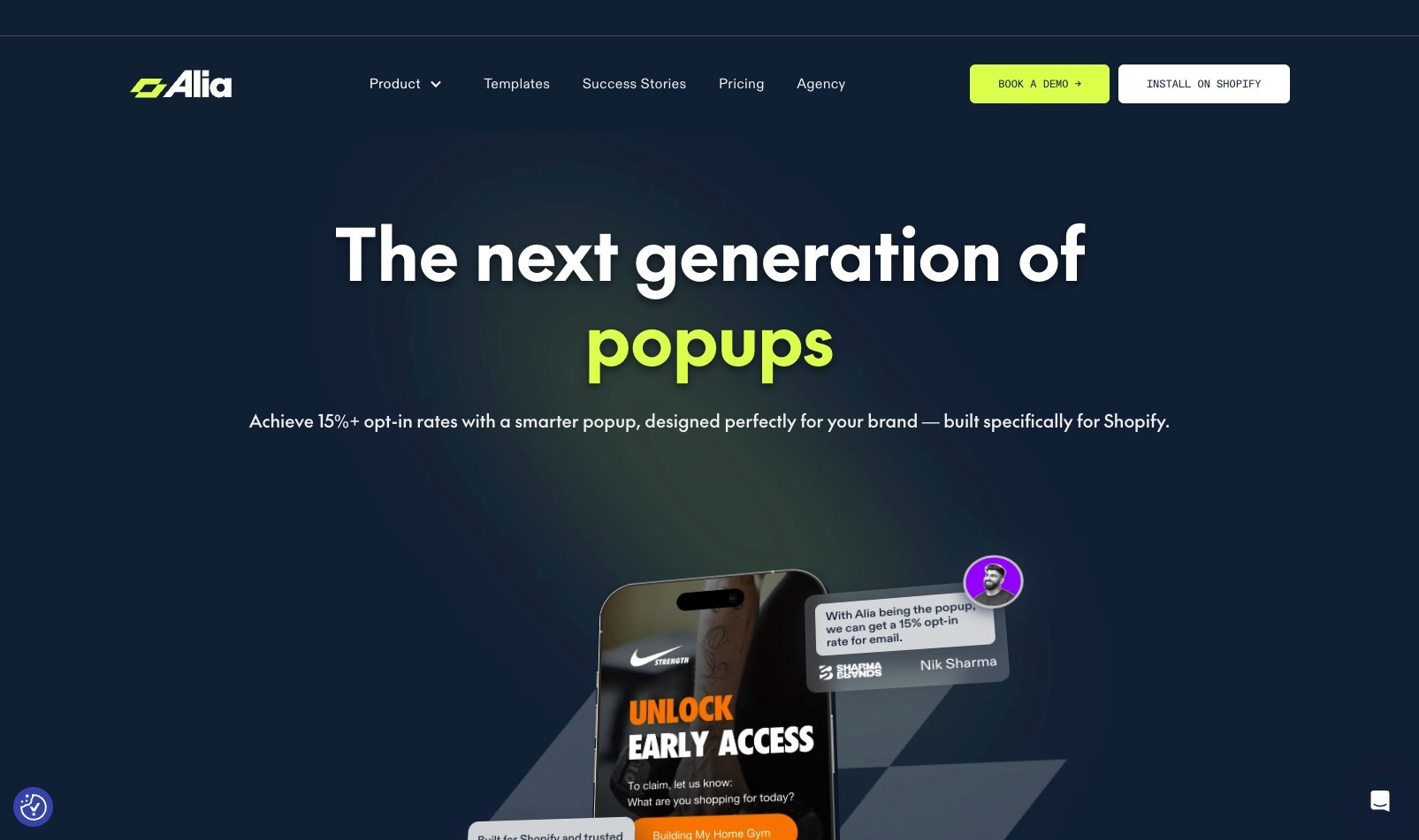 Alia does a great job standing out in one of the most commoditized categories in marketing: popups. Instead of trying to be cheaper, they position themselves as the smartest pop-up for Shopify.